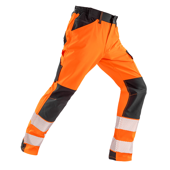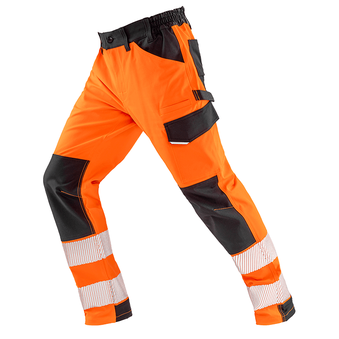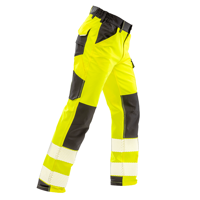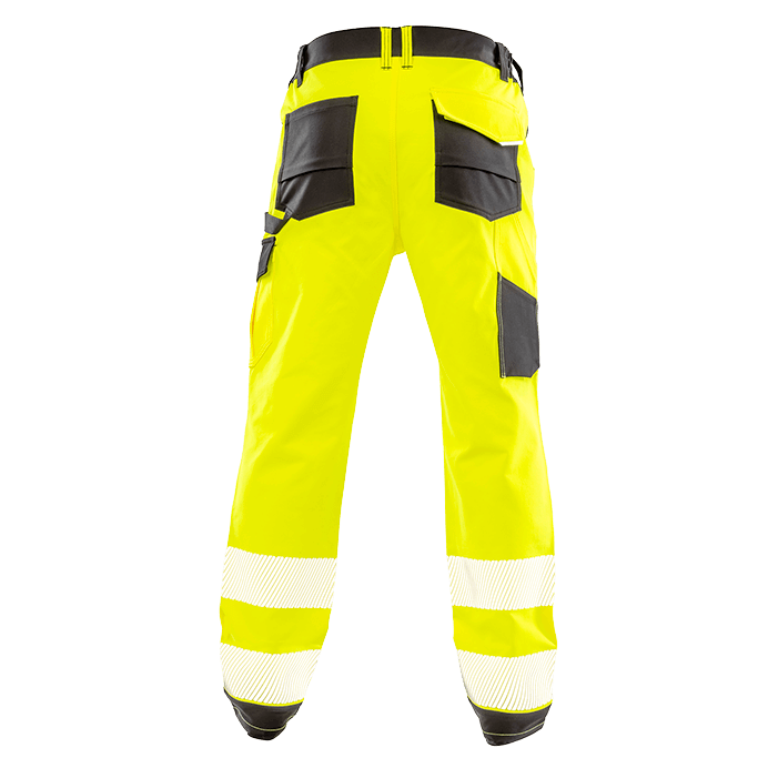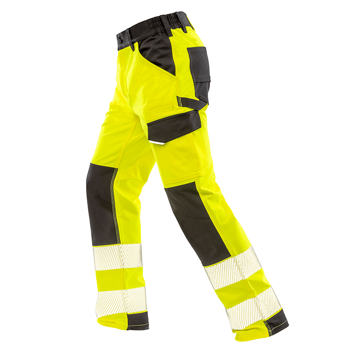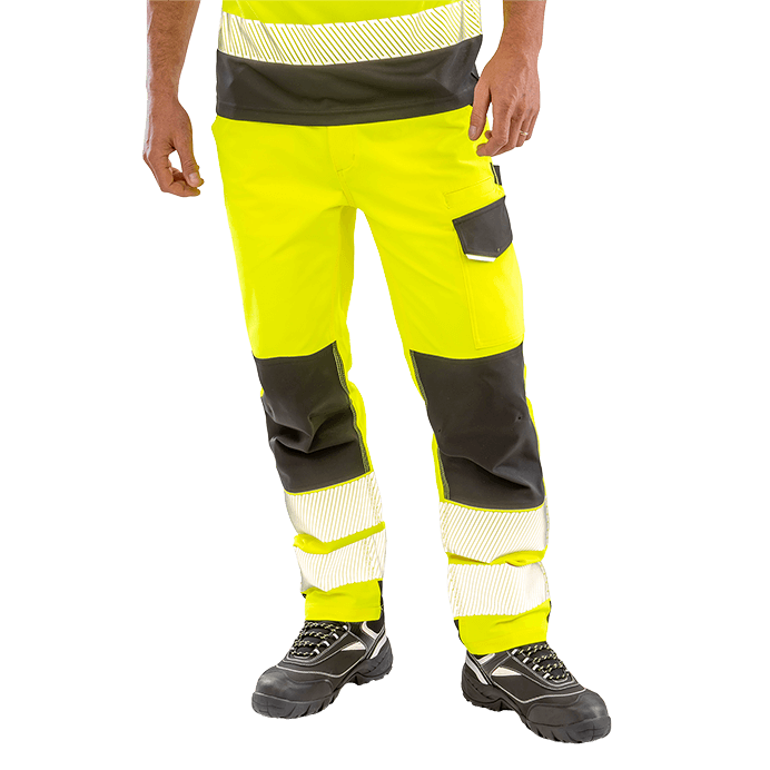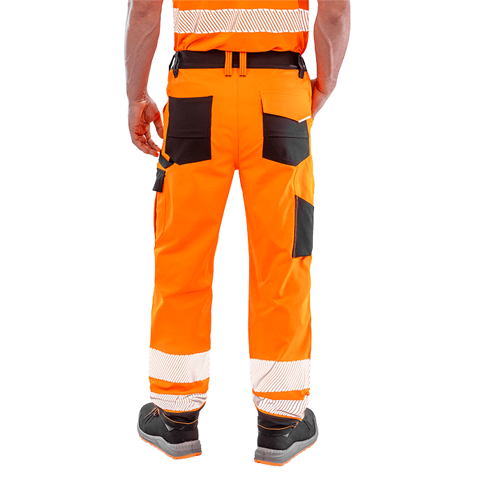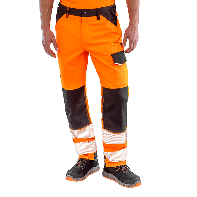 Supremely comfortable, a smart tailored highly visible safety-at- work trouser with a handsome, slim silhouette and multiple pockets . Ideal for durability and all day wear.